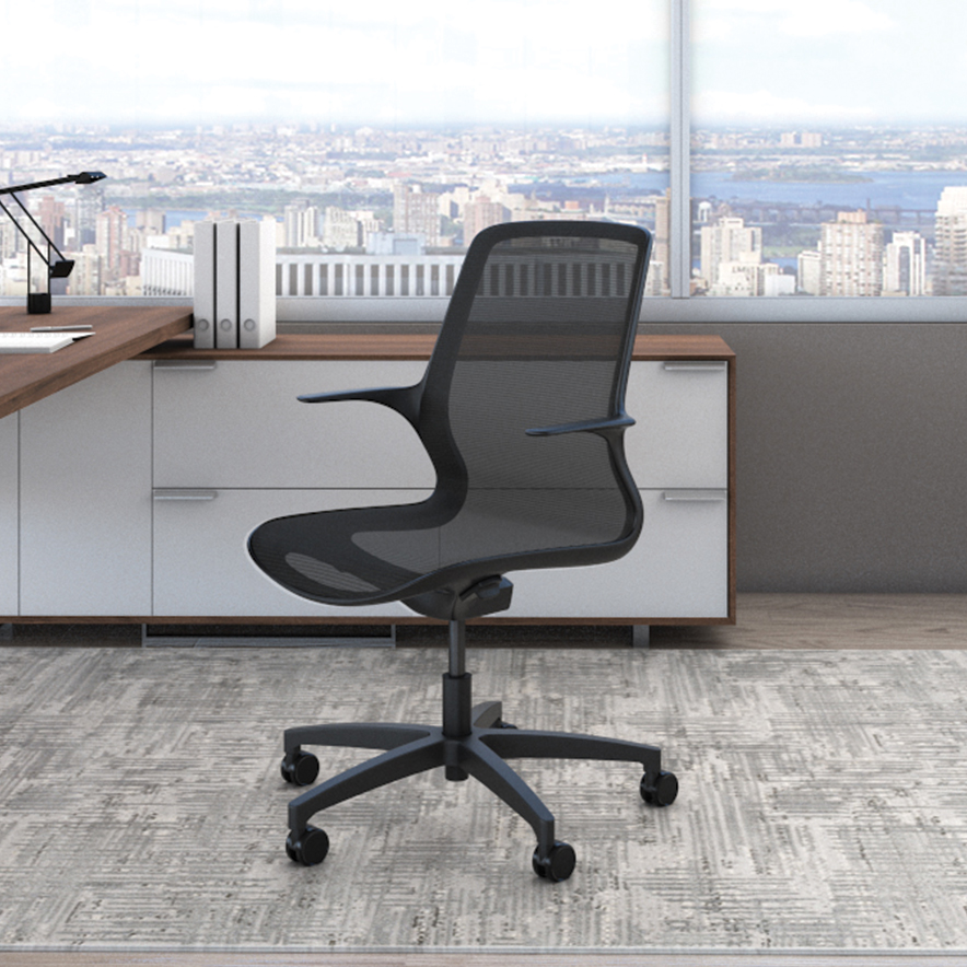 Inspired by nature, Omnia’s frame is organic and minimalist. The one-piece mesh seat and back enhance its graceful, sweeping lines. Omnia’s intuitive integrated controls are at the user’s fingertips, and its featherweight frame allows for easy and changeable space planning.